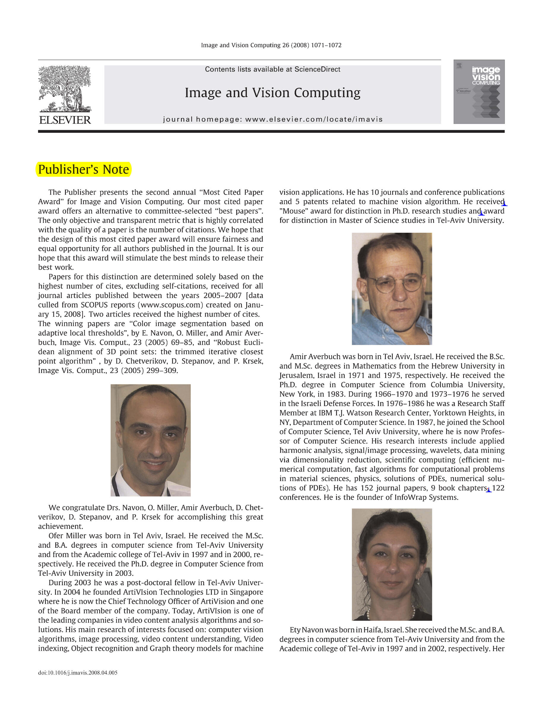 | 6. Method for illumination independent change detection in a pair of registered gray images | Ofer Miller... | 2006 | 7088863 |